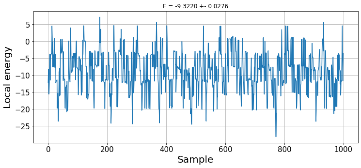 print(f"The obtained energy is {energy:.4f}+-{statistical_error:.4f}")The obtained energy is -19.4827+-0.0086